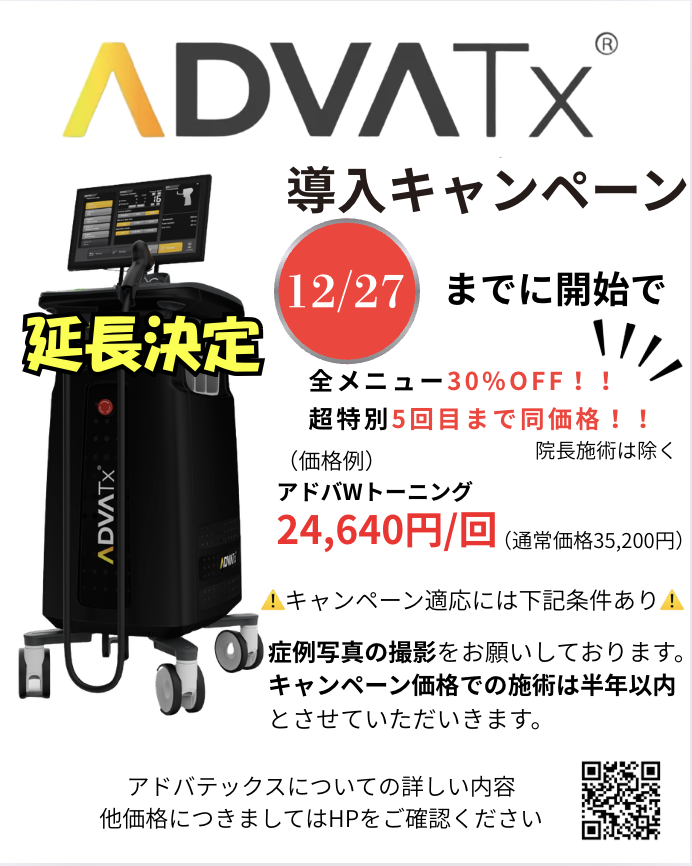 『アドバテックスレーザー』導入記念キャンペーン 全メニュー30%off! 12月27日まで!